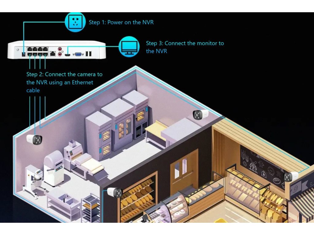 S kompletním setem Tenda K8P-4TR jednoduchým způsobem vytvoříte kamerové zabezpečení pro dům, chatu, firmu, sklad, obchod apod. Propojení kamer a rekordéru je pomocí Ethernetového kabelu a rekordér kamery pomocí PoE sám napájí. Lze vzdáleně online sledovat veškeré prostory, které jsou pokryty kamerami. Po jednoduchém zapojení a snadném nastavení je systém v plném provozu a online dostupný. Set obsahuje 8 ks kvalitních 4MP kamer které jsou již připárované k rekordéru.