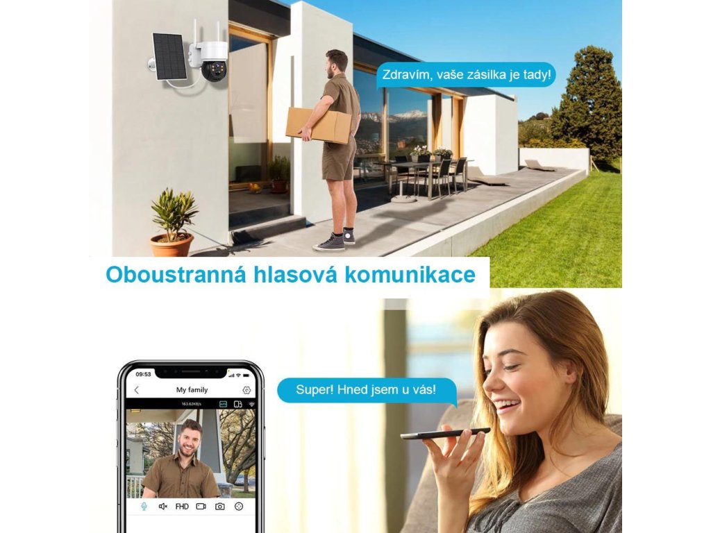 TRX Innotronik ICS-BC26Chytrá venkovní bezpečnostní kamera s PIR čidlem a rozpoznáním lidské postavy pomocí AI zajistí dokonalé zabezpečení prostoru. Snímač nabízí rozlišení 2,0 Mpx a je schopný snímat video v rozlišení 1920 × 1080. Pro případ zhoršených světelných podmínek je přítomen IR přísvit do vzdálenosti až 15 m a bílý LED přísvit pro pořizování barevných záznamů v noci. Součástí kamery je integrovaný reproduktor a mikrofon, který umožní kvalitní oboustrannou komunikaci. Natočené záznamy je možné ukládat i na microSD kartu o kapacitě až 128 GB. Připojení lze jednoduše realizovat bezdrátově pomocí Wi-Fi. Díky motorizovanému pohonu je možné kamerou otáčet v rozmezí 350° horizontálně a 90° vertikálně. Aplikace iCSee umožní pohodlný vzdálený přístup, ovládání kamery, pořizování záznamů či upozornění v případě detekce pohybu. Kamera je díky solárnímu nabíjení nezávislá na zdroji napájení. Vyměnitelné baterie s celkovou kapacitou 5000 mAh lze však dobít i prostřednictvím USB-C portu.