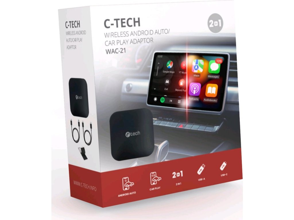 Užijte si naprostou svobodu a pohodlí s kombinovaným adaptérem C-TECH WAC-21, který umožňuje snadné propojení vašeho automobilu s bezdrátovými verzemi Android Auto i Car Play. Tento jedinečný adaptér kombinuje funkce pro obě platformy, což znamená, že nezáleží na tom, jaký telefon máte – vždy si vychutnáte přístup k oblíbeným funkcím, aplikacím a službám přímo na obrazovce palubního počítače vašeho vozu.