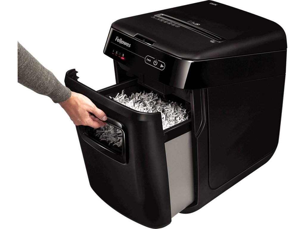 Skartování nikdy nebylo snazší. Revoluční novinka značky Fellowes, Vás o tom přesvědčí. Jen nalož, zapni a běž. Tento automatický skartovací stroj Vám umožní věnovat se prospěšnějším kancelářským činnostem, nežli je opakované postávání u běžného skartovače. Zařízení je schopno na jeden pracovní cyklus při automatickém podávání skartovat až 150 listů 70g papíru v křížovém řezu 4×38 mm. Skartovač je vybaven vstupní štěrbinou pro ruční podání až 8 listů papíru. Výkonný řezací mechanismus zpracuje při automatickém podávání sešívačkou sešité papíry (až 20 sponkou sešitých listů 70g papíru), sponky (až 20 spojených listů). Při manuálním podávání i kreditní karty.