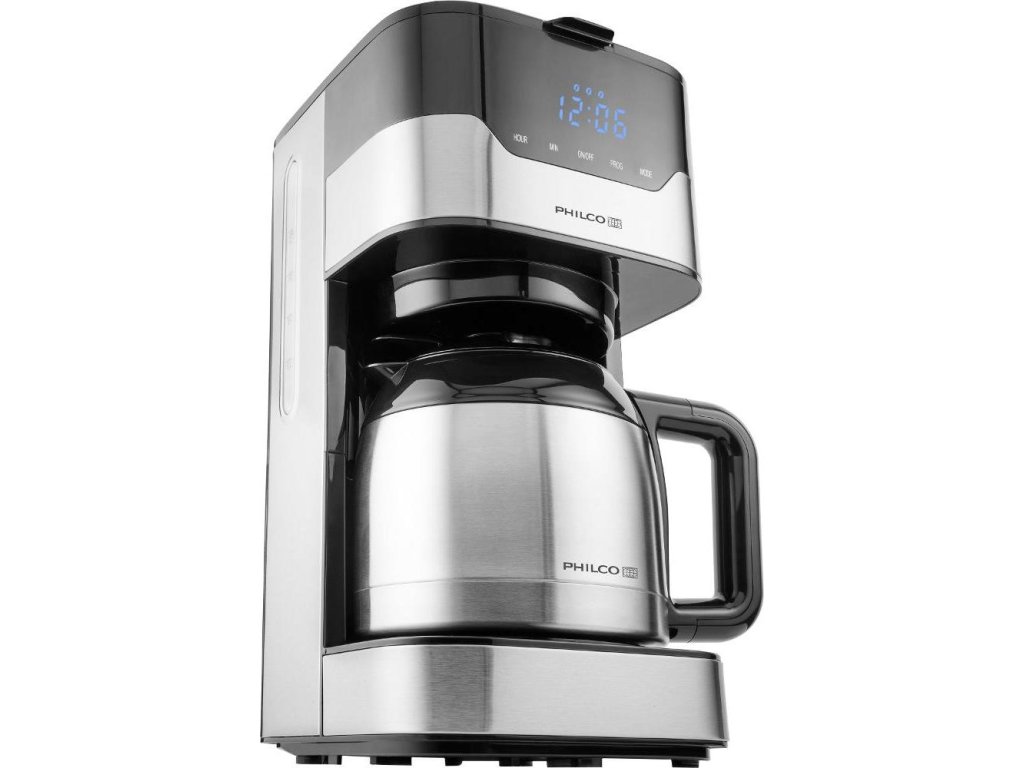 Hlavnou výhodou kávovaru na filtrovanú kávu Philco PHCM 3000 je dvojplášťová termokanvica, vďaka ktorej káva vydrží čerstvá s plnou chuťou dlhšiu dobu. Zároveň aj šetrí náklady na el.energiu, pretože nemusí zbytočne prihrievať prekvapkávanú kávu v kanvicipo ukončení jej prípravy. Kompaktné rozmery a elegantné nerezové prevedenie bude vyzerať nadčasovo v každej kuchyni, alebo v kancelárii. S objemom 1,2 l si budete môcť vychutnať až 12 šálok kávy. Kávovar disponuje funkciou Drip-stop, ktorá preruší proces prekvapkávania kávy pri vybratej kanvici. Množstvo vody v kávovare ľahko skontrolujete na stupnici hladiny vody v zásobníku na vodu. Na prehľadnom LCD displeji si jednoducho môžete naprogramovať prípravu kávy až na 24 hodín. V kávovare PHCM 3000 použiť permanentný filter, ktorý je súčasťou balenia, ale taktiež aj papierové filtre (nie sú súčasťou balenia).