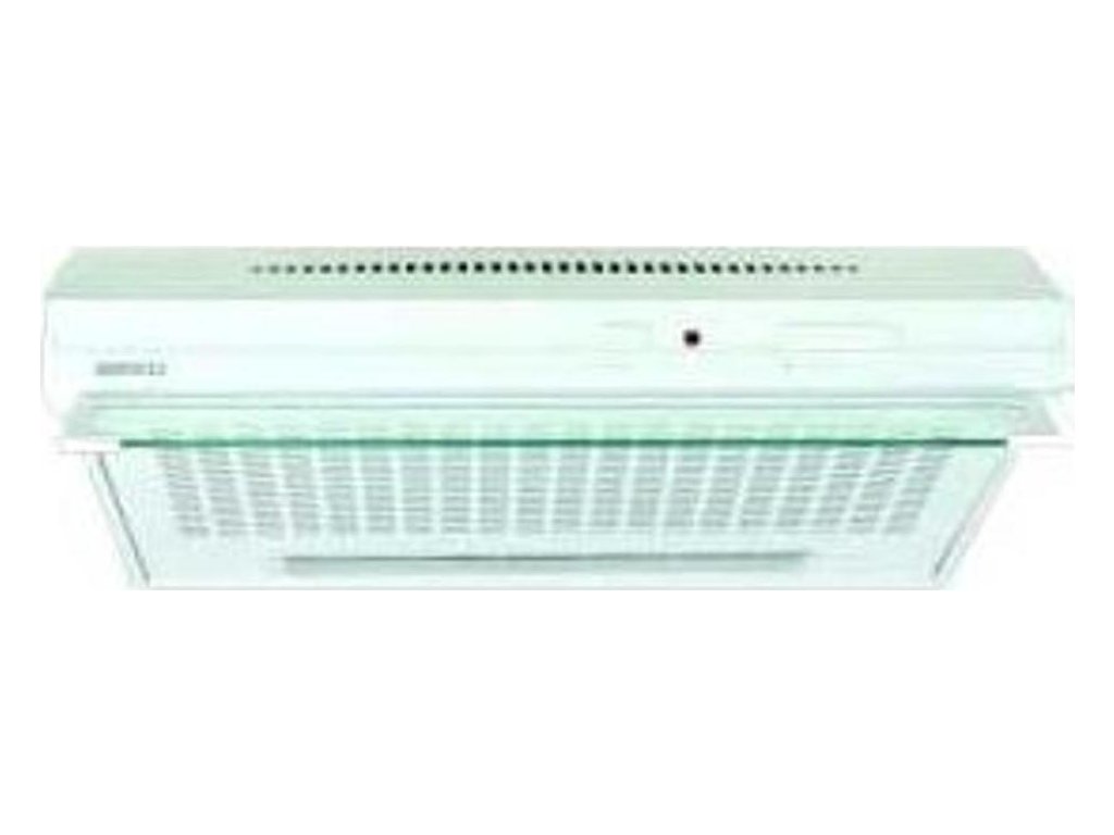 závěsný, max. výkon 300 m3/hod., posuvné ovládání, hlučnost 69 dB, 3 rychlosti, kovový tukový filtr, odtah/recirkulace, halogenové osvětlení 40 W, šířka 60 cm, bílý