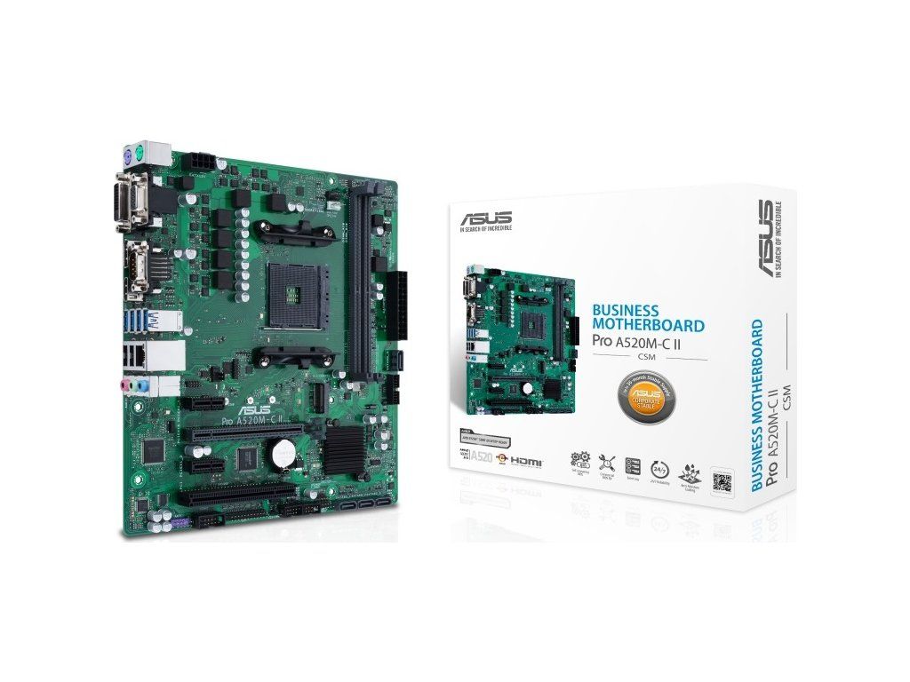 ASUS PRO A520M-C II/CSM, AM4, AMD A520, 2xDDR4, 1xDP, 1xHDMI, 1xVGA, 1xDVI-D, mATX