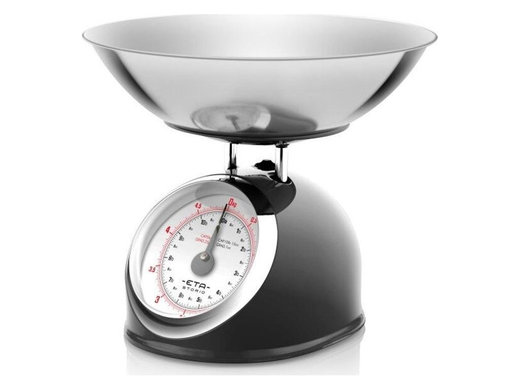 Stolová dizajnová mechanická kuchynská váha STORIO, rozsah merania do 5 kg, rozlíšenie 25 g , celokovové prevedenie, jednotky merania: g / kg / lb / oz, nerezová misa o objeme 2 l, farba: čierna
