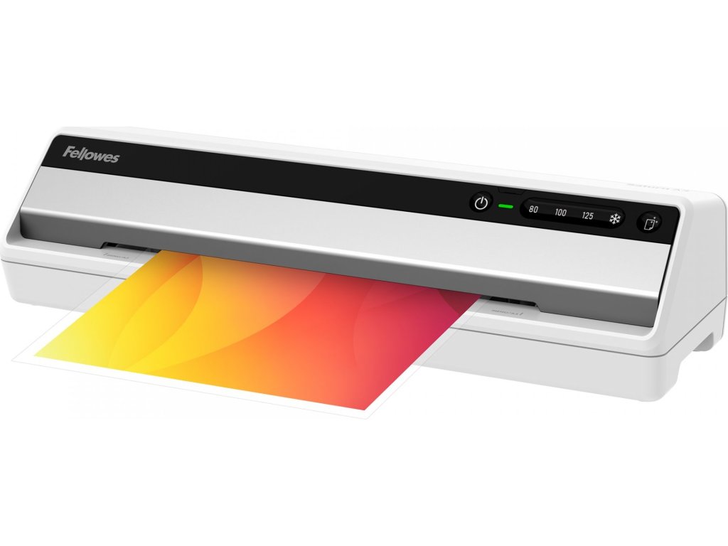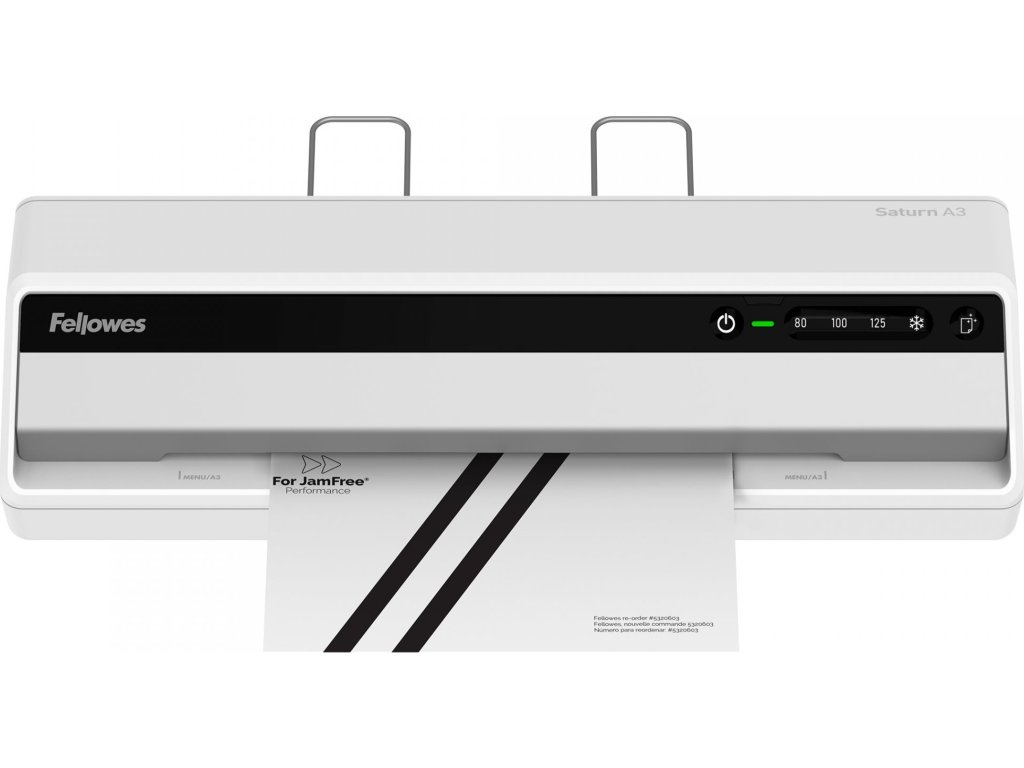 Fellowes laminátor Saturn3i A3 s novým atraktivním designem a inovovaným systémem zrychleného výhřevu. Laminování za cca 1 min od zapnutí. Umožňuje kvalitní laminaci až do formátu A3 v rozsahu 80–125 mic tloušťky laminovacího filmu, včetně laminace fotografií. Max. tloušťka dokumentu 0,6 mm.