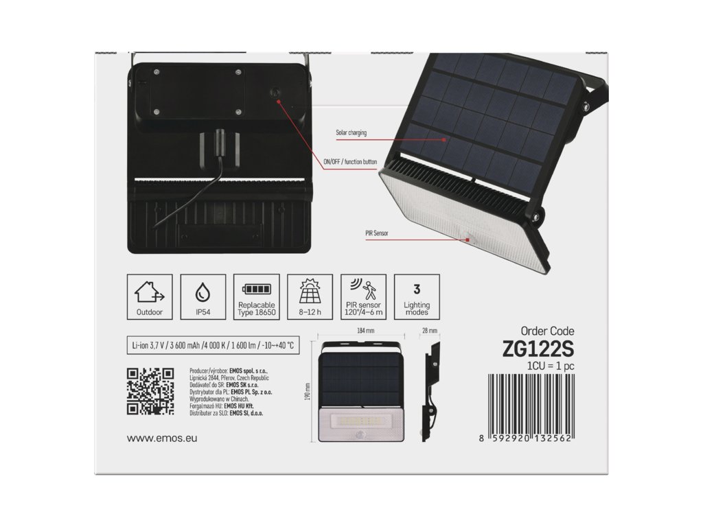 LED SOLARNÍ REFLEKTOR SOLO 1600LM IP54 NW