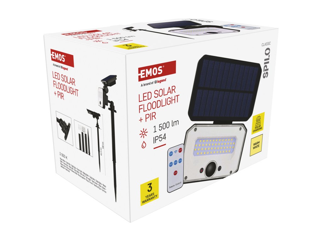 LED SOLARNÍ REFLEKTOR SPILO 1500LM IP54 WW