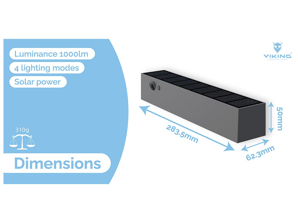 PIR senzor s úhlem detekce 120° má dosah až 5 metrů. Jakmile bude detekován pohyb, světlo se automaticky rozsvítí. Moderní a výkonný monokrystalický solární panel poskytuje vysoký nabíjecí výkon. Viking SR24 disponuje robustním provedením s certifikovaným stupněm odolnosti IP54.