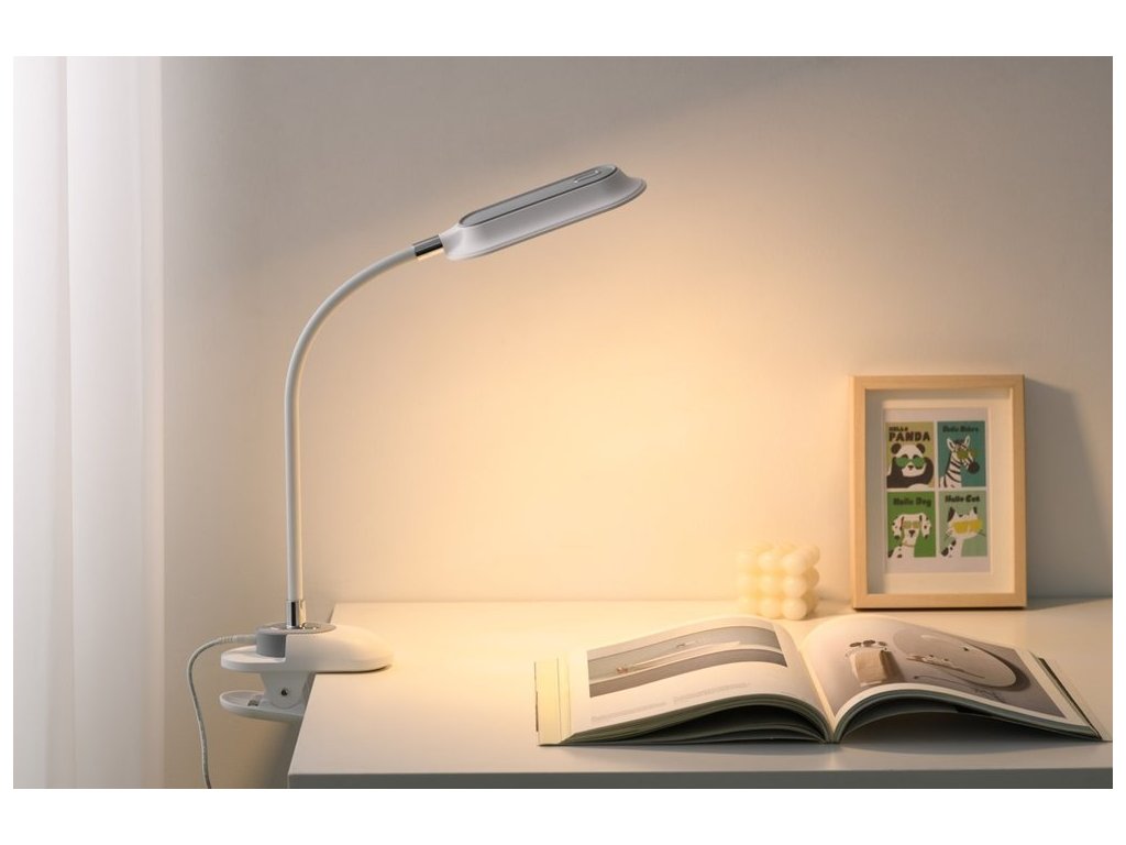 Kompaktní stolní lampička s vysokým výkonem svícení 7,5 W a světelným tokem až 800 lm. Díky pevnému klipu ji jednoduše upevníte na desku stolu, polici nebo rám postele. Ohybné rameno umožňuje správné nasměrování světla přesně tam, kde ho potřebujete.
