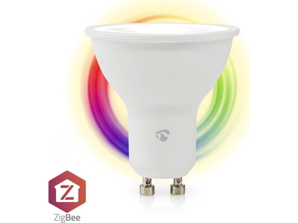NEDIS chytrá LED žárovka/ Zigbee 3.0/ GU10/ PAR16/ 4,7W/ 230V/ 470lm/ teplá – studená bíla/ 2700–6500K/ RGB/ stmívatelná