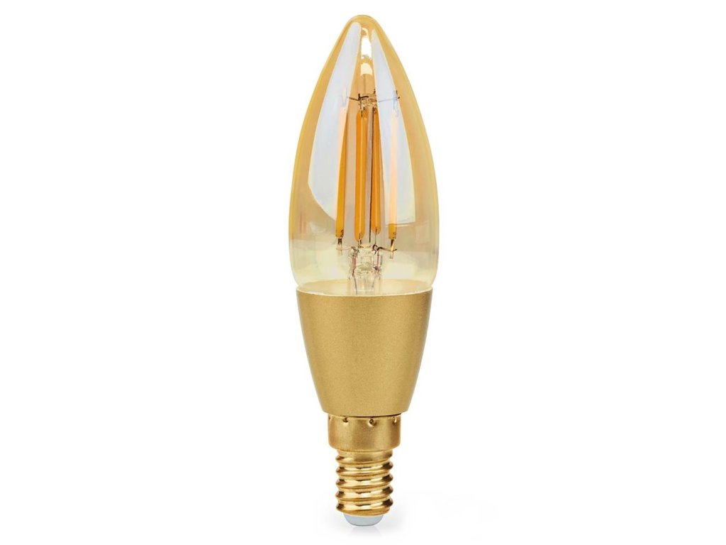 NEDIS Wi-Fi chytrá LED žárovka s vláknem/ E14/ svíčka/ 4,9W/ 230V/ 470lm/ teplá bílá/ 1800 - 3000K/ stmívatelná/ sklo