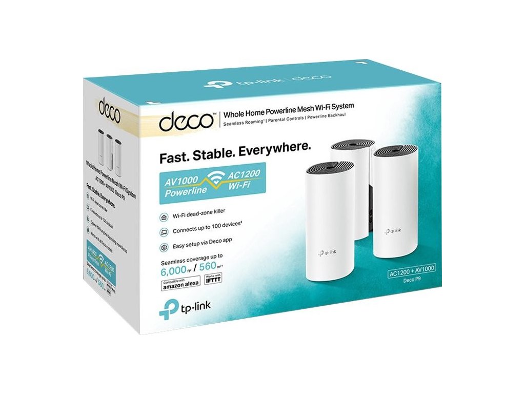Deco P9 kombinuje duální Wi-Fi a powerline pro vytvoření silnější mesh sítě. Technologie Powerline využívá elektrické rozvody vašeho domu k vytvoření silnějšího propojení mezi jednotkami Deco tím, že snižuje dopad stěn a jiných překážek na signál a poskytuje ještě vyšší rychlosti sítě a skutečně bezproblémové pokrytí .