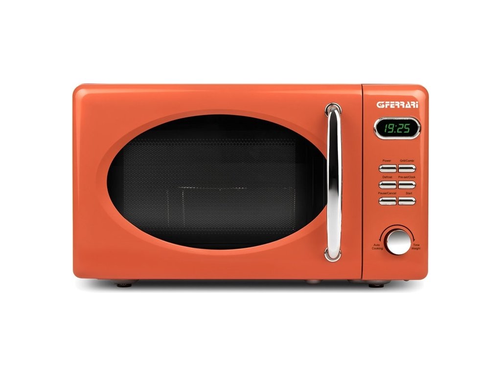 kapacita 20 l, elektronický ovládací panel s LED displejem, 4 režimy vaření: mikrovlnná trouba, gril, kombinované, rozmrazování, časovač, 8 přednastavených programů, vnitřní světlo, příslušenství: gril, skleněná deska O 24,5 cm, kruh s kolečky, výkon: mikrovlnná trouba 700W - gril: 800W, výkon 1150W