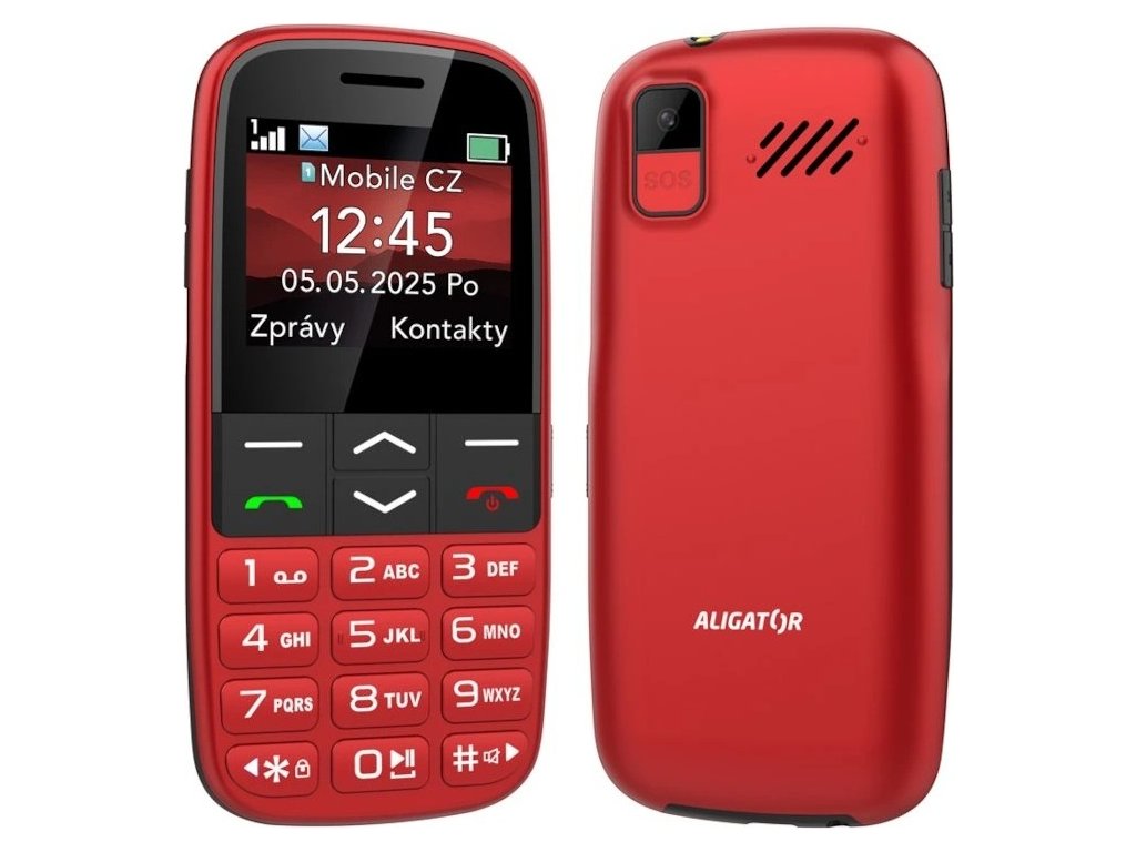 Obsah balení: Telefon Aligator A770, nabíjecí stojánek, návod k použití (bez nabíječky)
