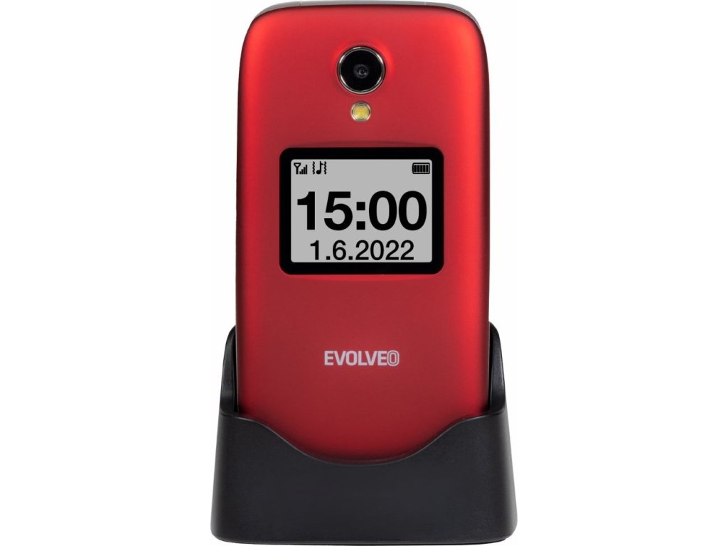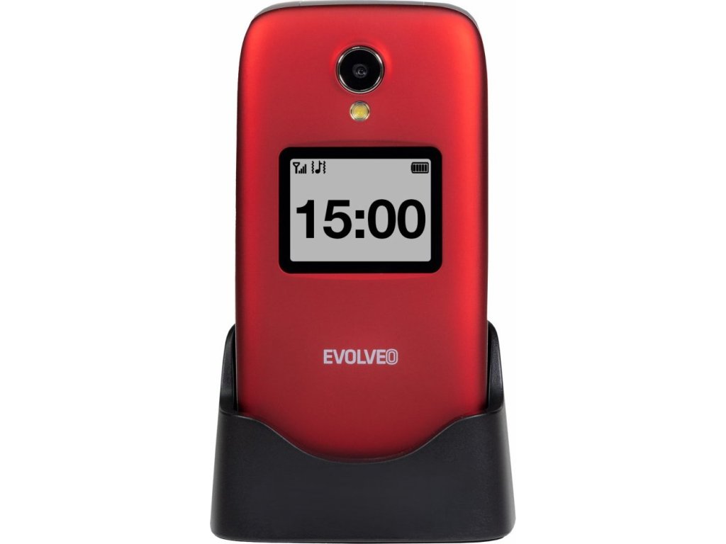 EVOLVEO EasyPhone FS, vyklápěcí mobilní telefon 2.8" pro seniory s nabíjecím stojánkem (červená barva)