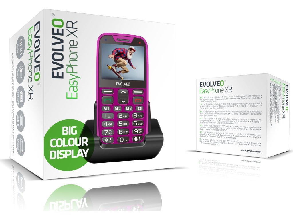 Ovládání mobilního telefonu EVOLVEO EasyPhone XR bylo maximálně zjednodušeno, aby vyhovovalo potřebám seniorů a dětí. Velká čísla a písmena jsou výborně čitelná na velkém barevném 2.3" TFT displeji, což zajišťuje snadnou navigaci a čitelnost informací. Jednotlivá tlačítka klávesnice jsou oddělena, což usnadňuje psaní SMS zpráv a zadávání telefonních čísel. Pro ještě větší pohodlí při používání telefonu jsou k dispozici 3 vyhrazená tlačítka na přední straně telefonu, která umožňují rychlý přístup k důležitým funkcím, jako je fotoaparát.
