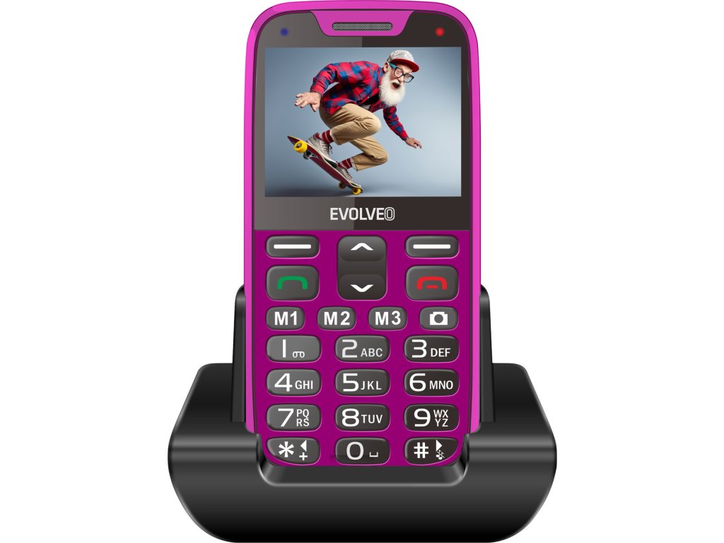 EVOLVEO EasyPhone XR, mobilní telefon pro seniory s nabíjecím stojánkem, růžová