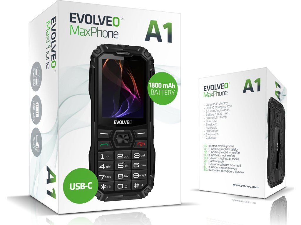 Tlačítkový mobilní telefon EVOLVEO MaxPhone A1