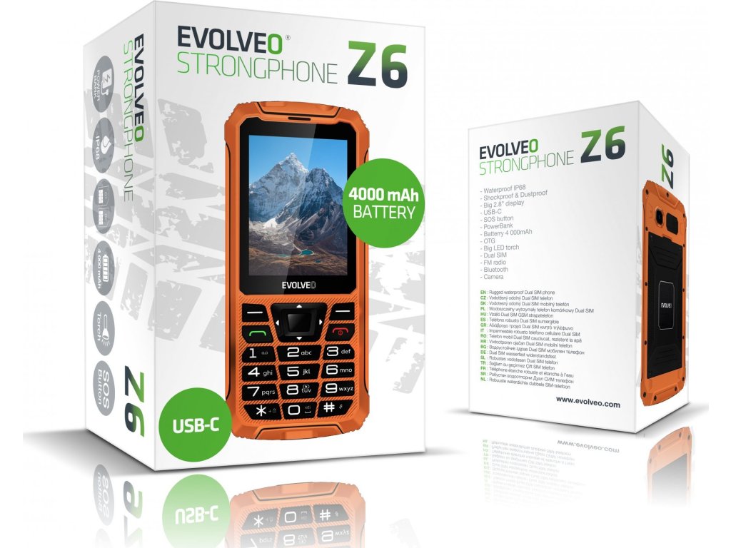 StrongPhone Z6 je telefon s opravdu extrémní výdrží. A to nejen kvůli svému odolnému tělu s vodotěsností dle IP68, které odolá pádům, vodě, blátu nebo sněhu, ale hlavně díky velké 4 000 mAh baterii. To vše je doplněno o velký 2,8“ displej, funkci powerbanky, SOS tlačítko a mnoho dalších výhod, které tento model nabízí.