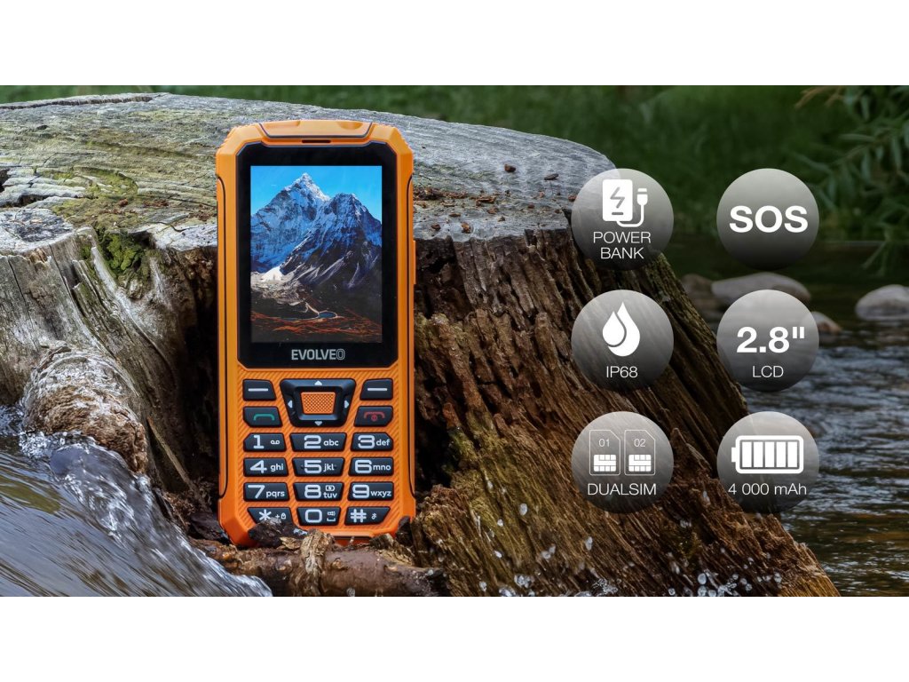• EVOLVEO StrongPhone Z6, vodotěsný odolný Dual SIM telefon, oranžový (PartNo: SGP-Z6-OR)