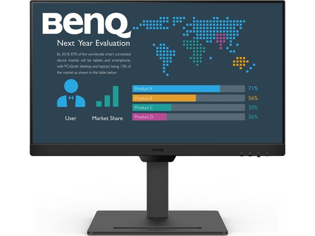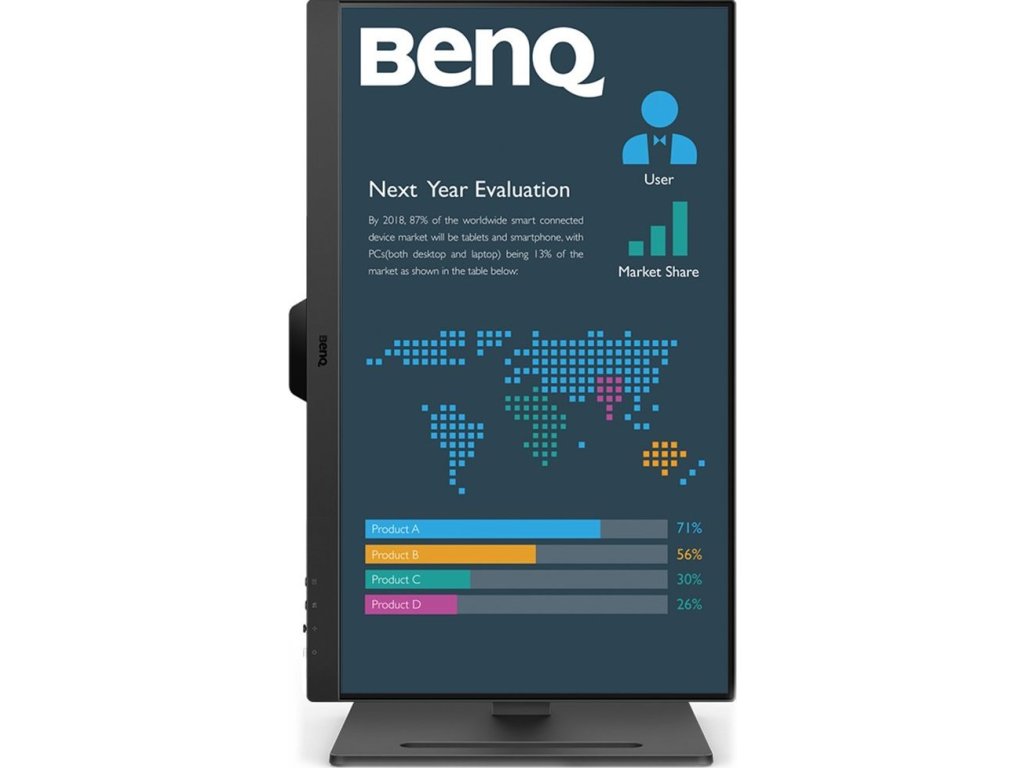 S monitorem BenQ BL2790T dokážete čelit každé pracovní výzvě. Vyznačuje se potřebnou ergonomií pro nastavení do výšky či úhlu otočení až o 90°. Díky tomu se přizpůsobí všem vašim potřebám ohledně pohodlí a umožní vám efektivně pracovat po celý den. Displej dosahuje úhlopříčky 27" a ostrého Full HD rozlišení. PC aplikace, internetové stránky, dokumenty a multimediální obsah tak zobrazí jasně a ostře.