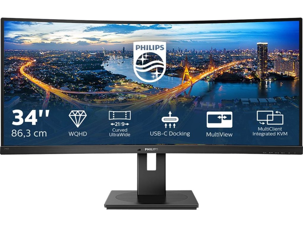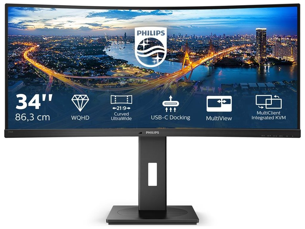 Zakřivený ultraširokoúhlý 34“ displej Philips řady B vám poskytne pohlcující pohled na práci. Univerzální rozhraní USB-C a ergonomický design stojanu zajišťují optimální pracovní podmínky. Únavu očí snižují funkce s certifikací TÜV.