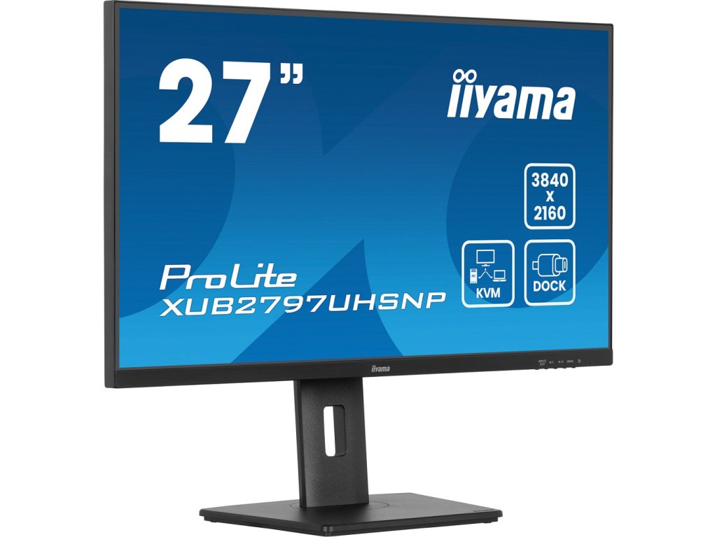 Objevte XUB2797UHSNP, 27'' 4K IPS panel vybavený dokovací stanicí USB-C (96W PD), přepínačem KVM a RJ45 pro připojení k LAN.