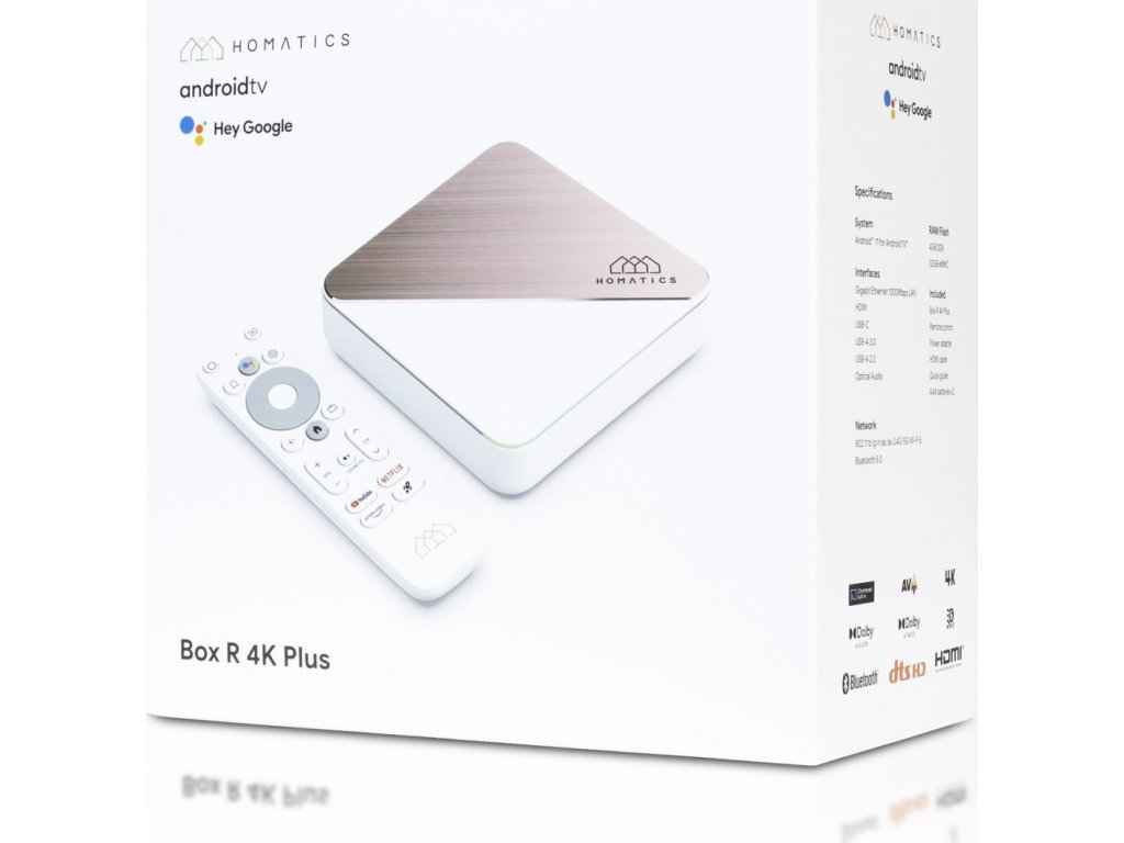 Homatics Box R Plus 4K patří mezi nejvýkonnější 4K multimediální zařízení na trhu s Android TV 12 s automatickou aktualizací, který z obyčejné TV udělá výkonný smart TV a posune obraz a zvuk na vyšší úroveň s podporou Dolby Vision a Dolby Atmos.