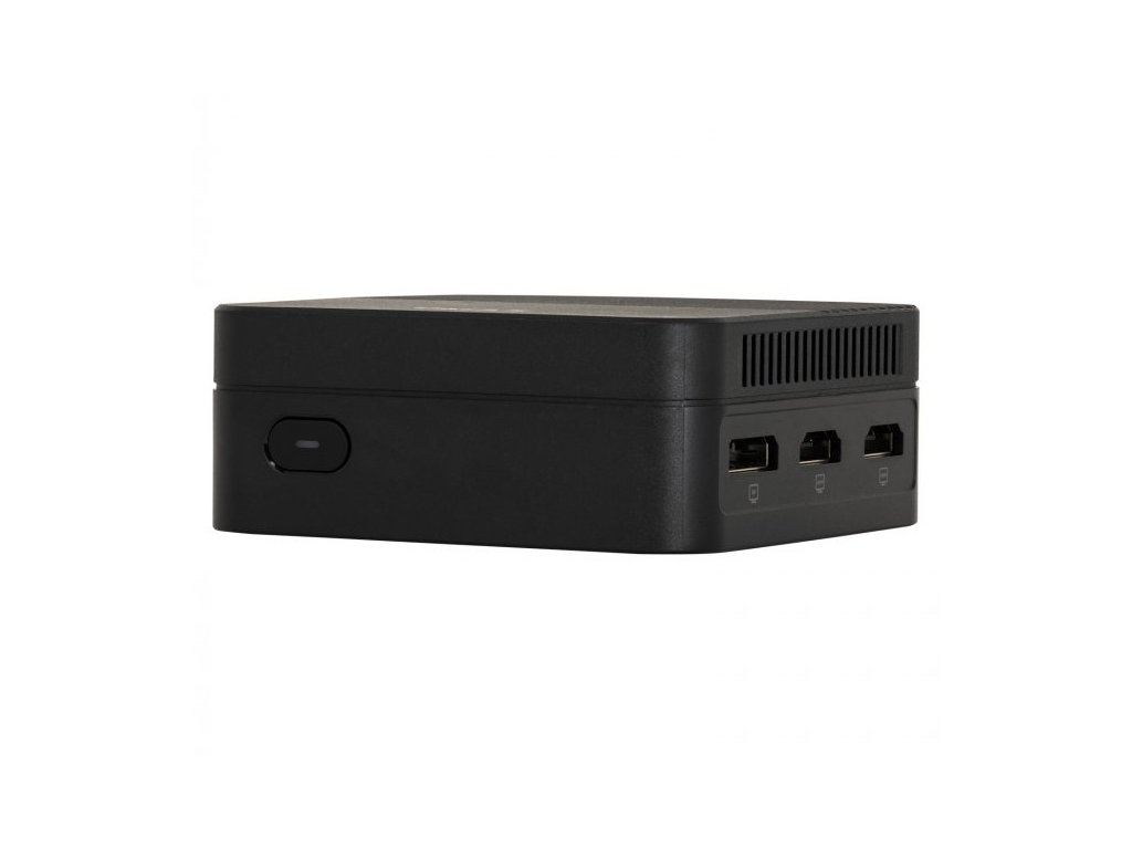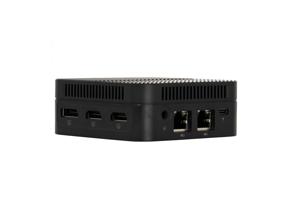 Mini PC vyniká skvělou konektivitou – nabízí dva HDMI 2.0 výstupy a DisplayPort 1.4 pro připojení až tří monitorů s podporou 4K při 60 fps s HDR. Pro síťové připojení jsou k dispozici dva GBit LAN porty a duální Wi-Fi 5. Patentovaný design tichého chlazení umožňuje nepřetržitý provoz 24/7 při spotřebě max. 20 W. Kompaktní rozměry 89 × 89 × 35 mm a hmotnost pouhých 250 g spolu s přiloženým VESA držákem umožňují zavěsit počítač na libovolné místo.