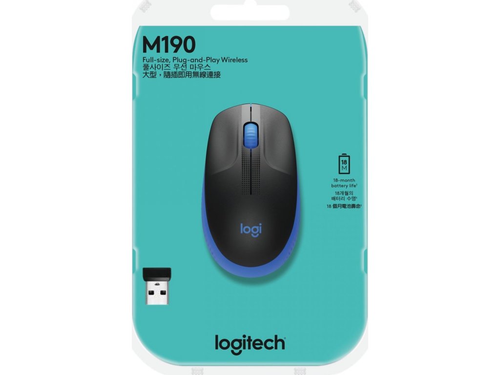 Logitech M190 je bezdrátová myš plnohodnotné velikosti s pohodlným profilovaným tvarem, který kopíruje přirozené zakřivení středních a velkých rukou. Budete moci pracovat bezdrátově a volně se pohybovat – na vzdálenost až 10 metrů – prakticky bez zpoždění a výpadků. Tato kvalitní myš nabízí až 18měsíční výdrž baterie, přesné snímání a posun řádek po řádku za dostupnou cenu.