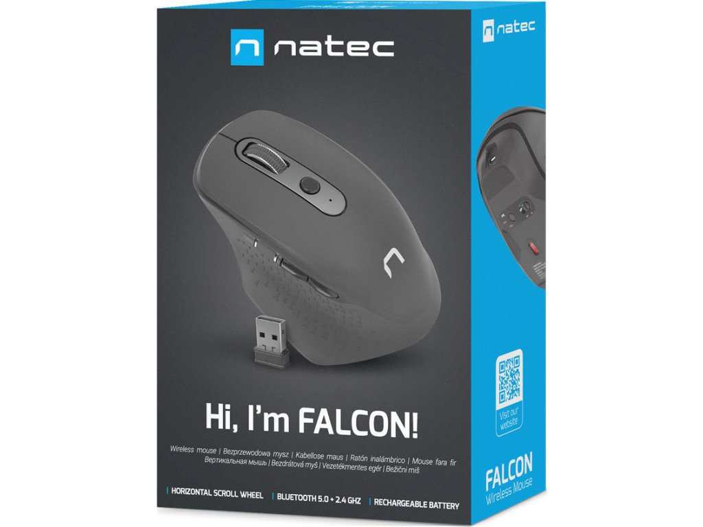 Natec Falcon je moderní bezdrátová kancelářská myš s trojím komunikačním režimem, která umožňuje připojení ke třem zařízením současně. Díky speciálně navrženému tvaru snižuje svalovou zátěž a zlepšuje polohu ruky, navíc zaujme svou funkčností a vysokým komfortem používání.