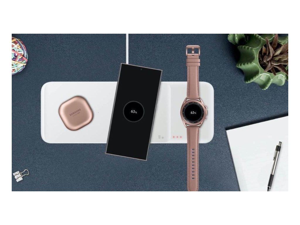 Samsung bezdrátová nabíječka EP-P6300TWE až pro tři zařízení, Fast Charge, bílá