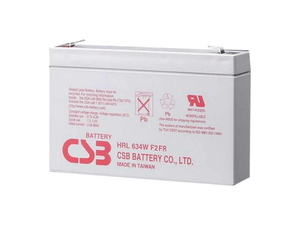CSB HRL634W F2Záložní olověný akumulátor (6 V, kapacita 9 Ah) v provedení VRLA (AGM).