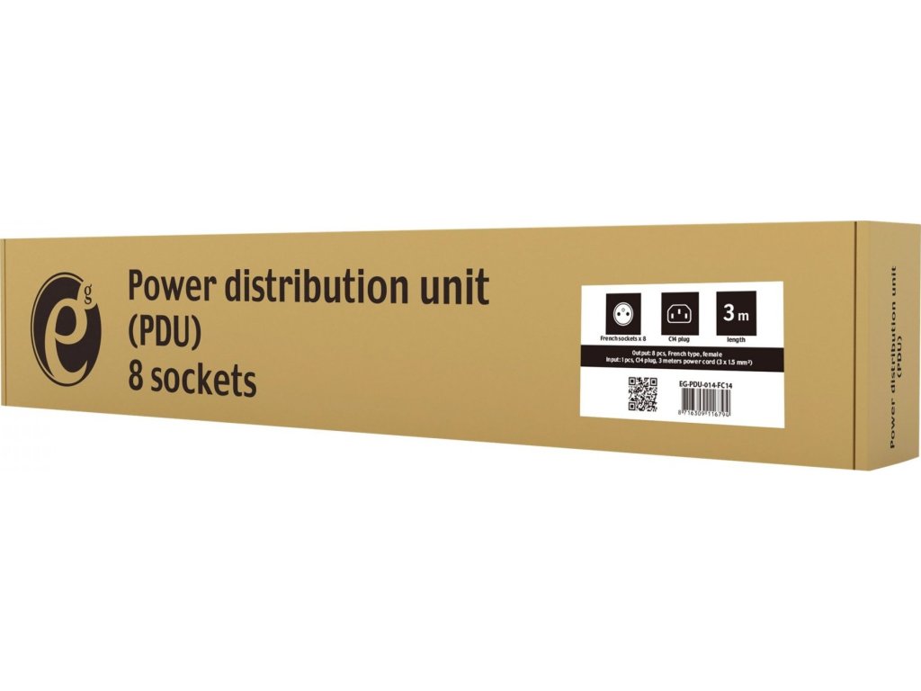 GEMBIRD PDU 8x French socket 1U 10A 3m C14 Plug