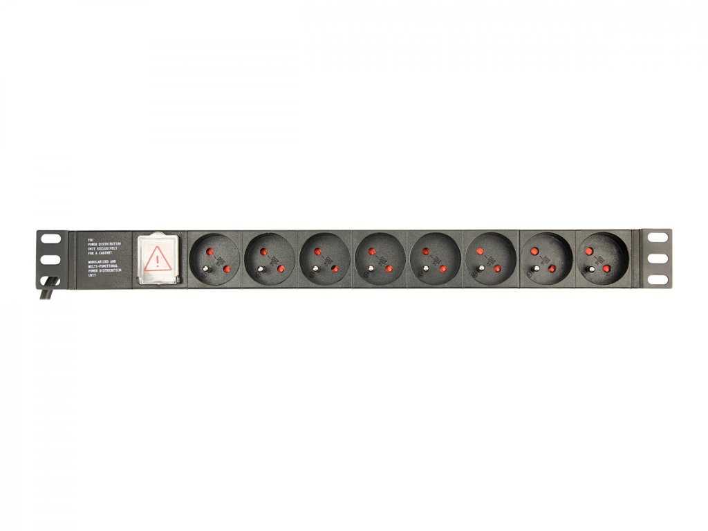 Power distribution unit (PDU), 8 French sockets, 1U, 10A, C14 plug 3 m cable