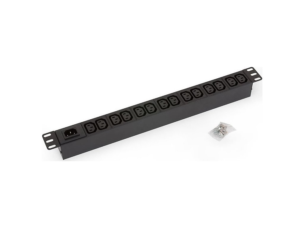 19" rozvodný panel 1U, 14x IEC320 C13 zásuvka max 10A, IEC320 C14 zásuvka max 10A, bez kabelu, RAL 9005