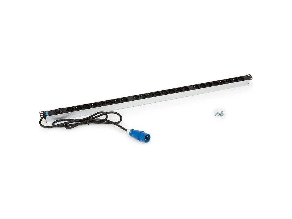 TRITON 19" rozvodný panel 24x230V zásuvka, 2m kabel,16A IEC60309, černý