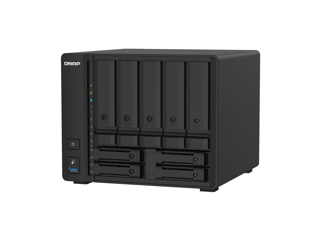 Čtyřjádrové 1,7GHz zařízení TS-932PX umístí devět diskových pozic do velikosti 5pozicového zařízení NAS. S pěti 3,5" diskovými pozicemi SATA 6Gb/s a čtyřmi 2,5" pozicemi SATA 6Gb/s poskytuje zařízení TS-932PX schopnost vytvořit hybridní infrastrukturu HDD/SSD ke zvýšení výkonu aplikací. Se dvěma porty 10GbE SFP+ a dvěma porty 2,5GbE LAN podporuje zařízení TS-932PX sítě příští generace pro zefektivnění aplikací náročných na šířku pásma a zajištění plynulejšího přístupu k souborům a jejich sdílení.