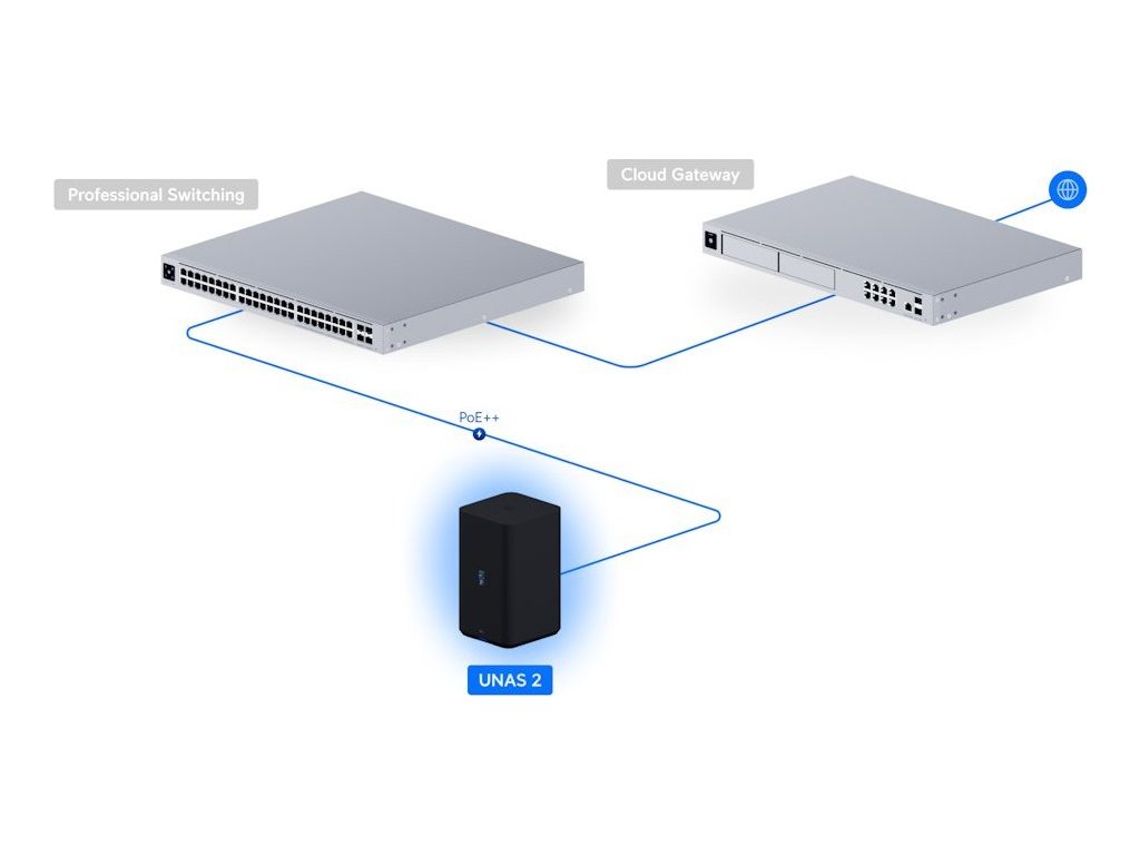 * UniFi Network Attached Storage se dvěma 3.5" HDD pozicemi nabízí výkonné a přitom prostorově úsporné řešení pro ukládání dat.