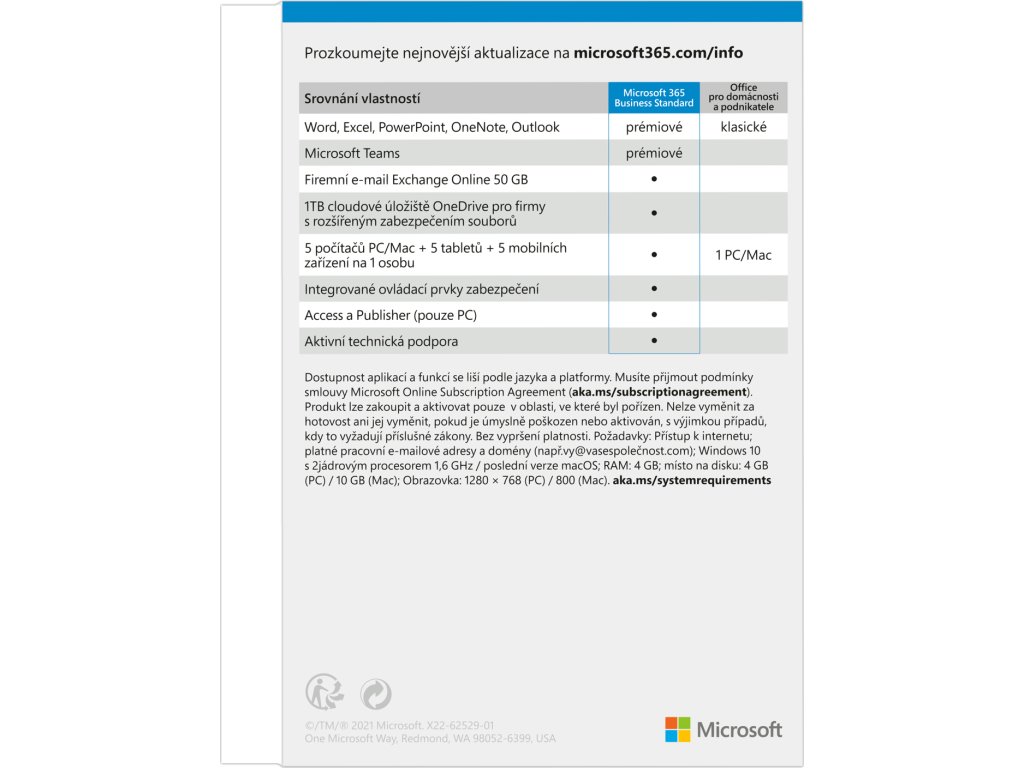 Obsah balíku Microsoft 365 Business Standard CZ (BOX)