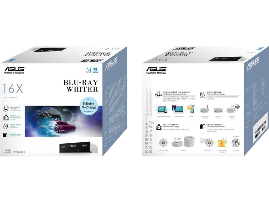 ASUS BLU-RAY Writer BW-16D1HT/BLK/B, black, SATA, bulk (bez SW)