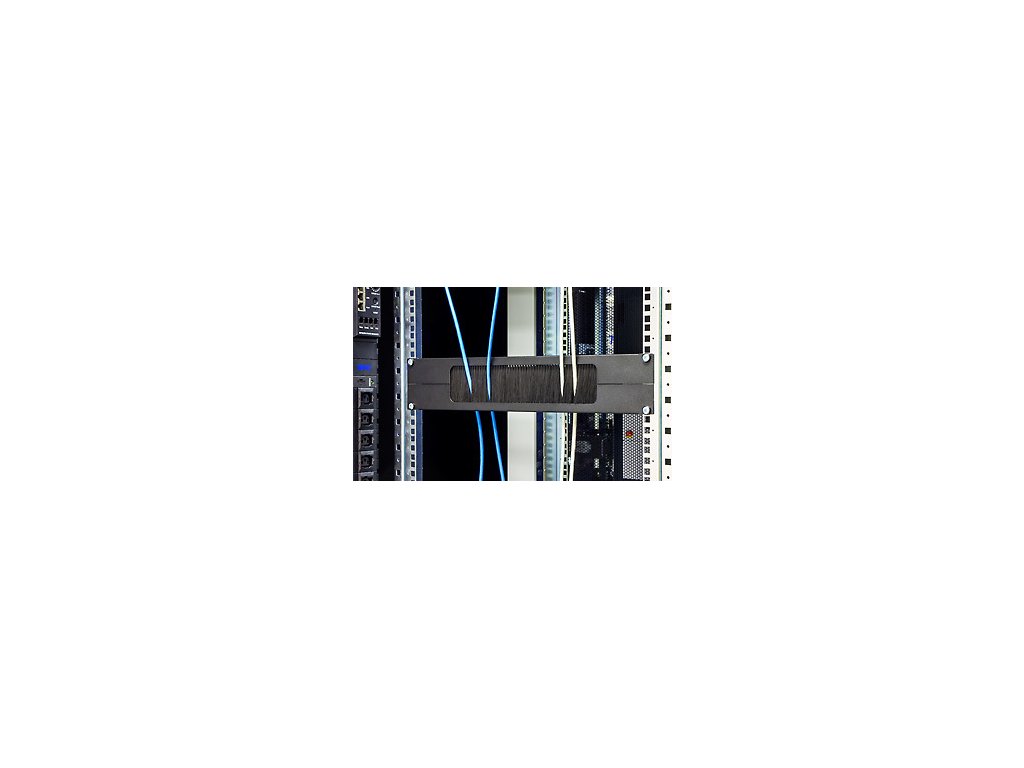 19" průchozí panel 2U rozdělený horizontálně, kartáč, otvor 330 x 55 mm.