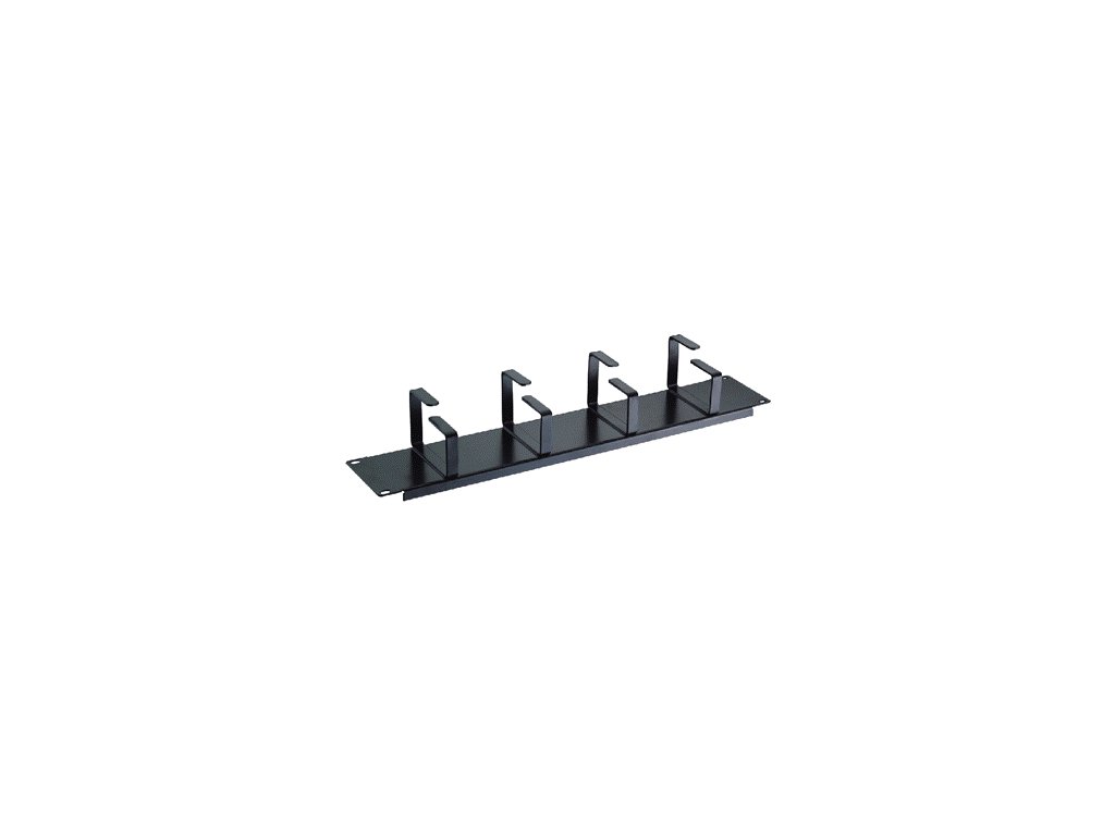 19" vyvazovací panel 2U 4x kov.háček (8,0 x 4,5-6,0cm) černý