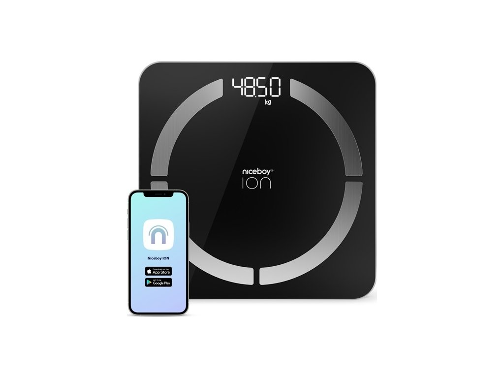 Chytrá osobní váha Niceboy ION SmartScale je schopna měřit 12 tělesných parametrů avytvořit profily až osmi osob. Váhu je možné propojit s mobilní aplikací Niceboy ION. Váhanabízí možnost uložit si data o vašem věku, výšce i pohlaví a díky propojení s aplikací pakmůžete zaznamenávat své úspěchy v ro
