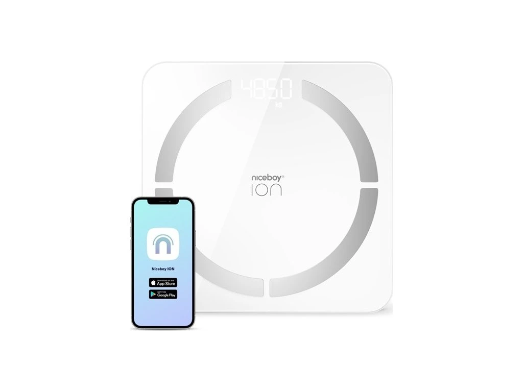 Chytrá osobní váha Niceboy ION SmartScale je schopna měřit 12 tělesných parametrů avytvořit profily až osmi osob. Váhu je možné propojit s mobilní aplikací Niceboy ION. Váhanabízí možnost uložit si data o vašem věku, výšce i pohlaví a díky propojení s aplikací pakmůžete zaznamenávat své úspěchy v ro