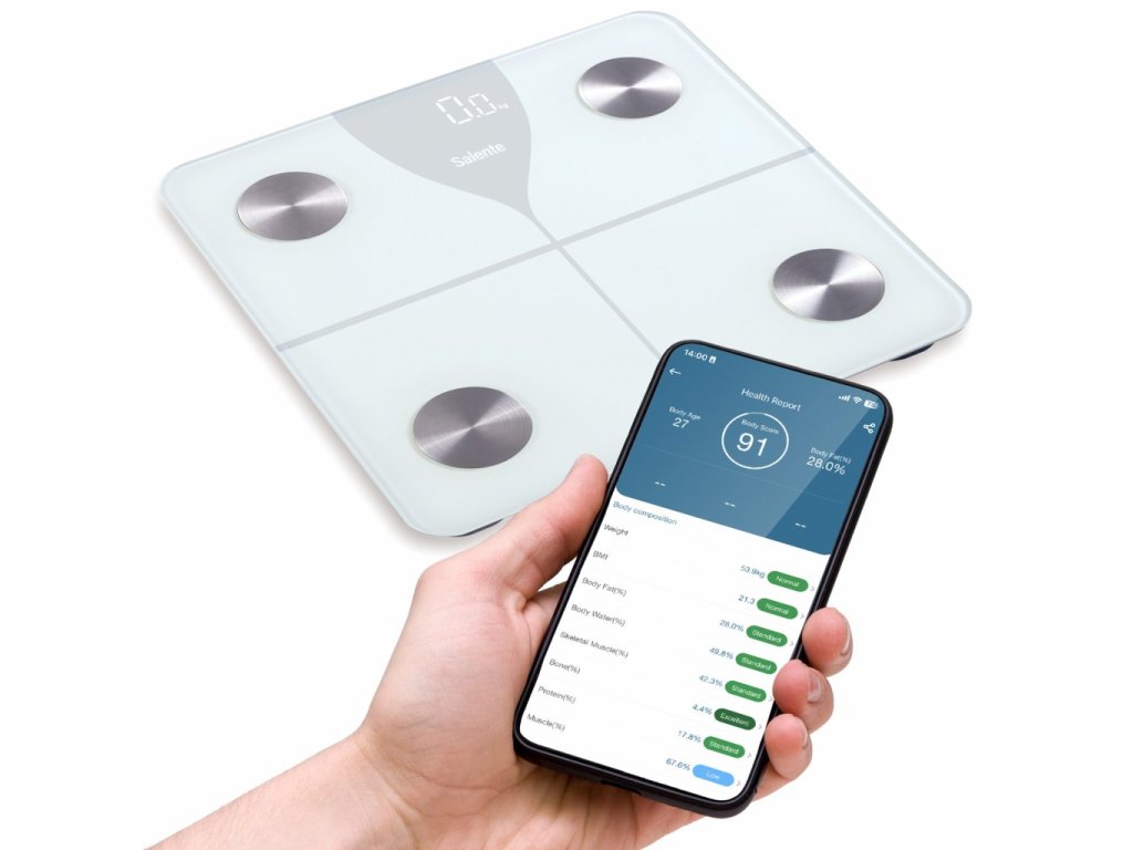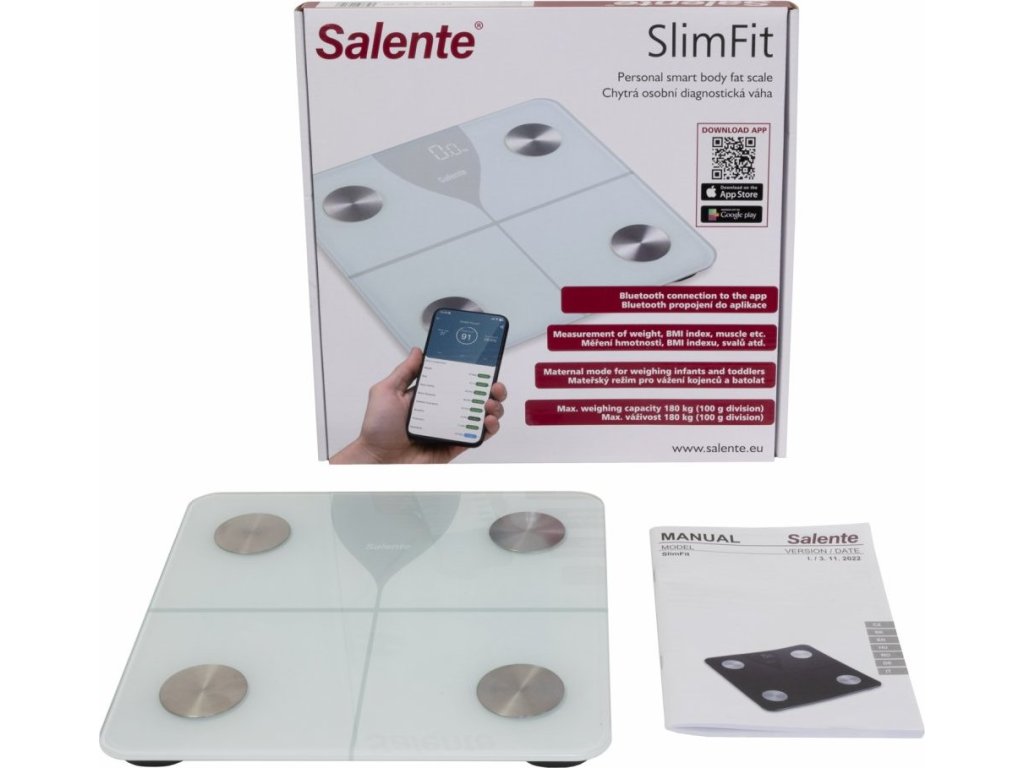 Salente SlimFit, osobní diagnostická fitness váha, Bluetooth, bílá
