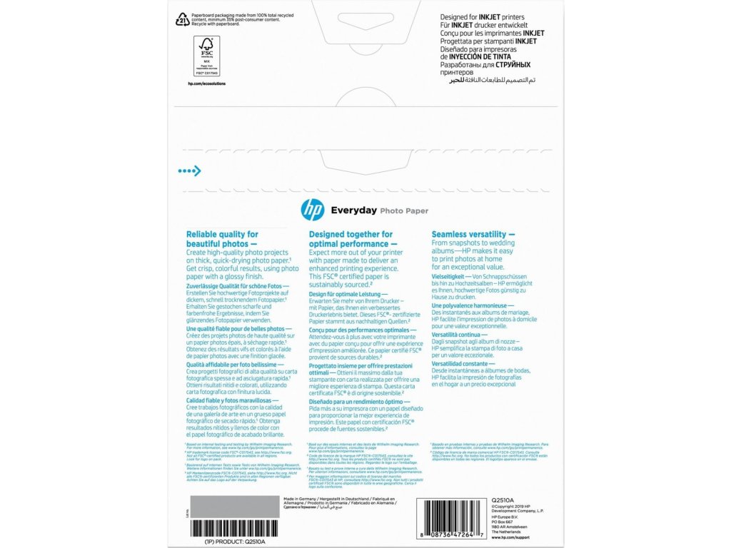 HP Everyday Glossy Photo Paper-100 sht/A4/210 x 297 mm, 200 g/m2, Q2510A