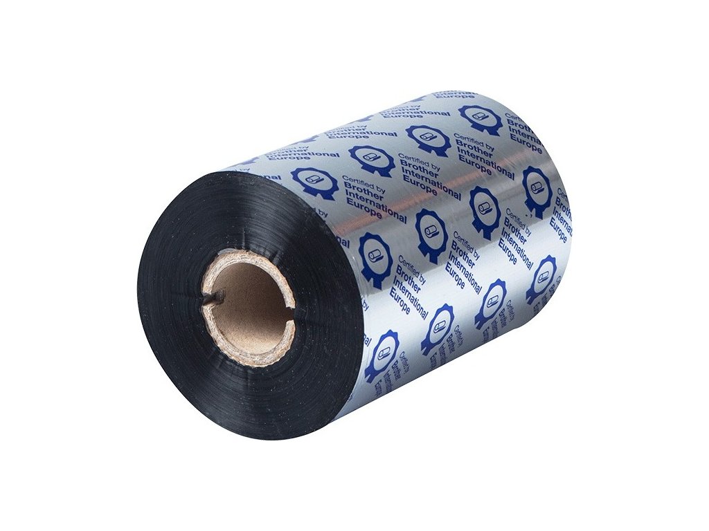 BRS-1D450-110 standardní termotransferová pryskyřičná páska s černým barvivem o délce 450 m a šířce 110 mm certifikovaná společností Brother International Europe.