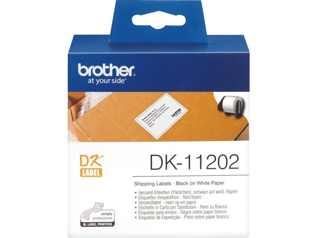Tyto originální štítky Brother DK-11202 (černá na bílé) jsou užitečné pro širokou škálu vašich obecných požadavků na štítky. Pro použití v domácím i kancelářském prostředí mohou být tyto přednastavené standardní adresní štítky použity k tisku log, čárových kódů, vizitek návštěvníků nebo informací o přepravě.