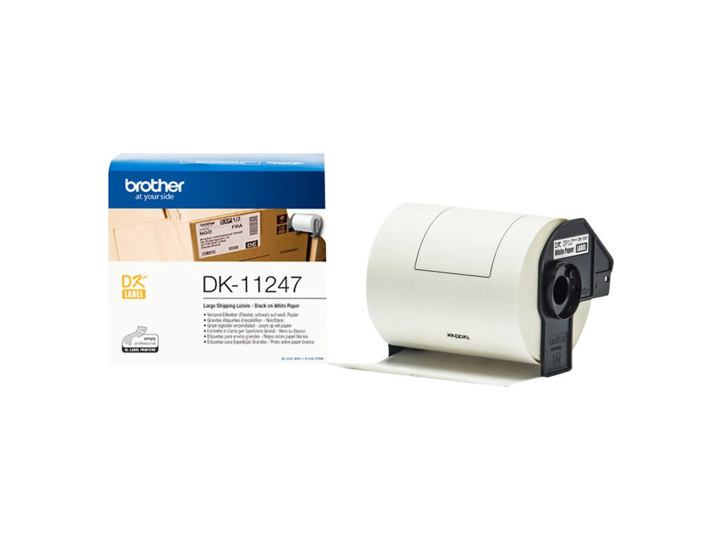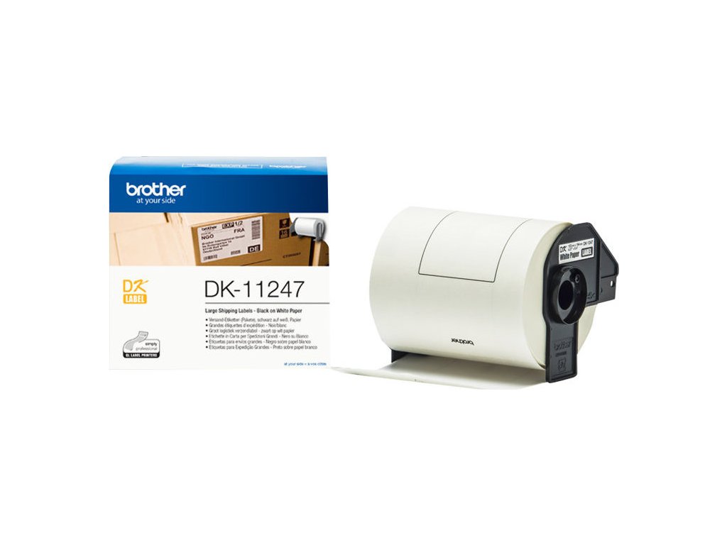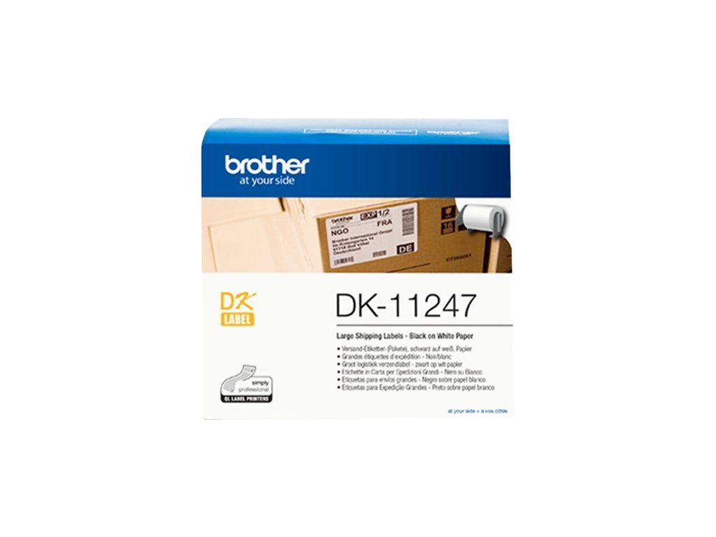 Tyto originální štítky Brother DK-11247 černá na bílé jsou užitečné pro širokou škálu vašich požadavků. Pro použití ve skladech i v kancelářských prostředích mohou být tyto velké přepravní štítky použity k zobrazování log, čárových kódů, odznaků návštěvníků nebo informací o přepravě.